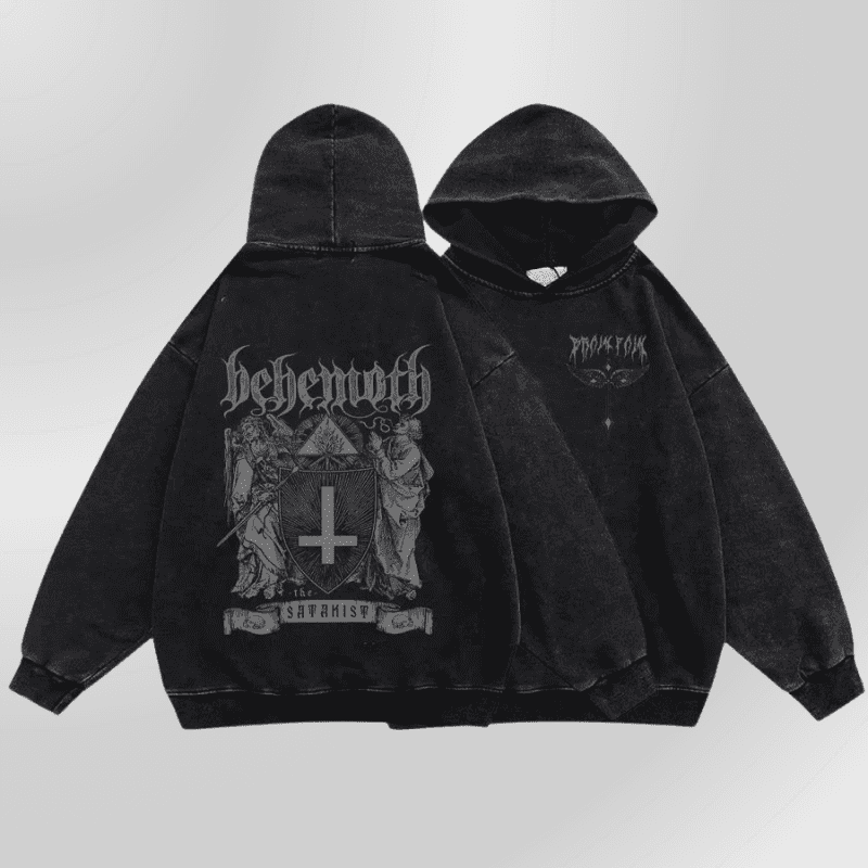 Felpa nera alternativa Grunge con cappuccio - Reversed