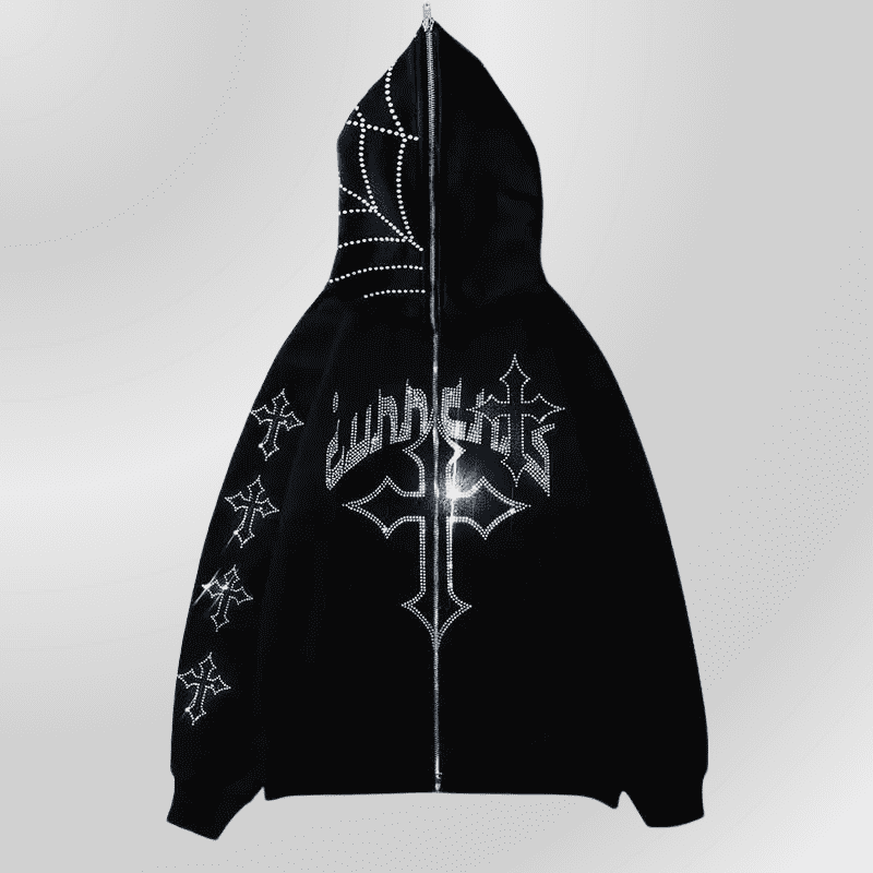 Felpa nera Grunge con croce gotica Vedi opzioni