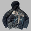 Felpa Nera Metal con Stampa di Ali e Teschi