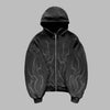 Felpa nera oversize con cappuccio e zip integrale fiamme darkwear