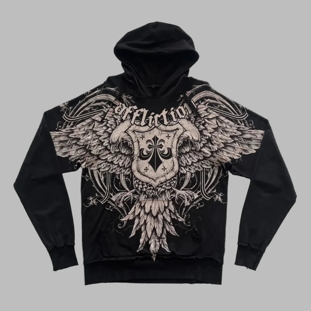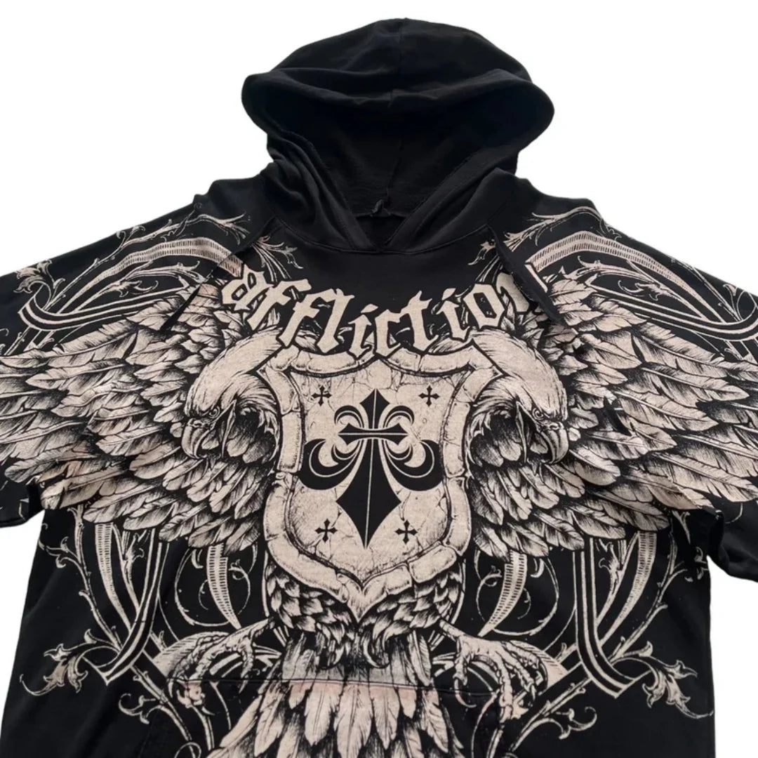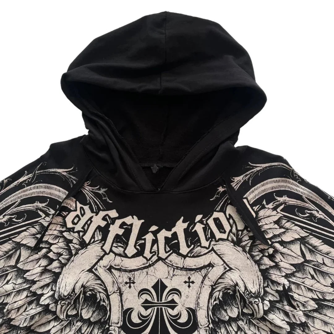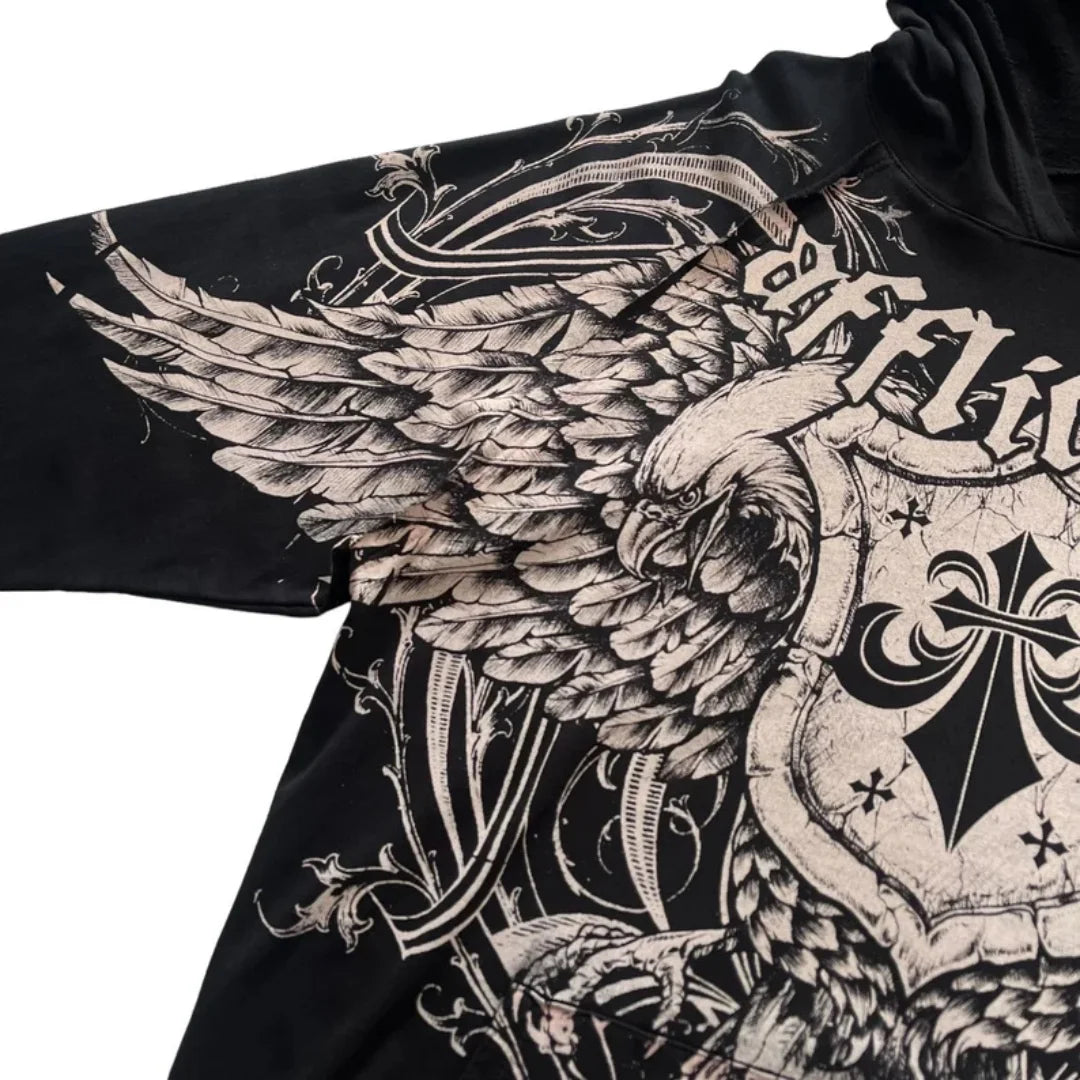 Felpa Nera Rock con Aquila e Ali Affliction