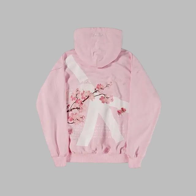 Felpa Rosa Jirai Kei con Fiori di Ciliegio Bianchi