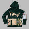 Felpa Verde YEW Studios Grunge con Stampa Vintage