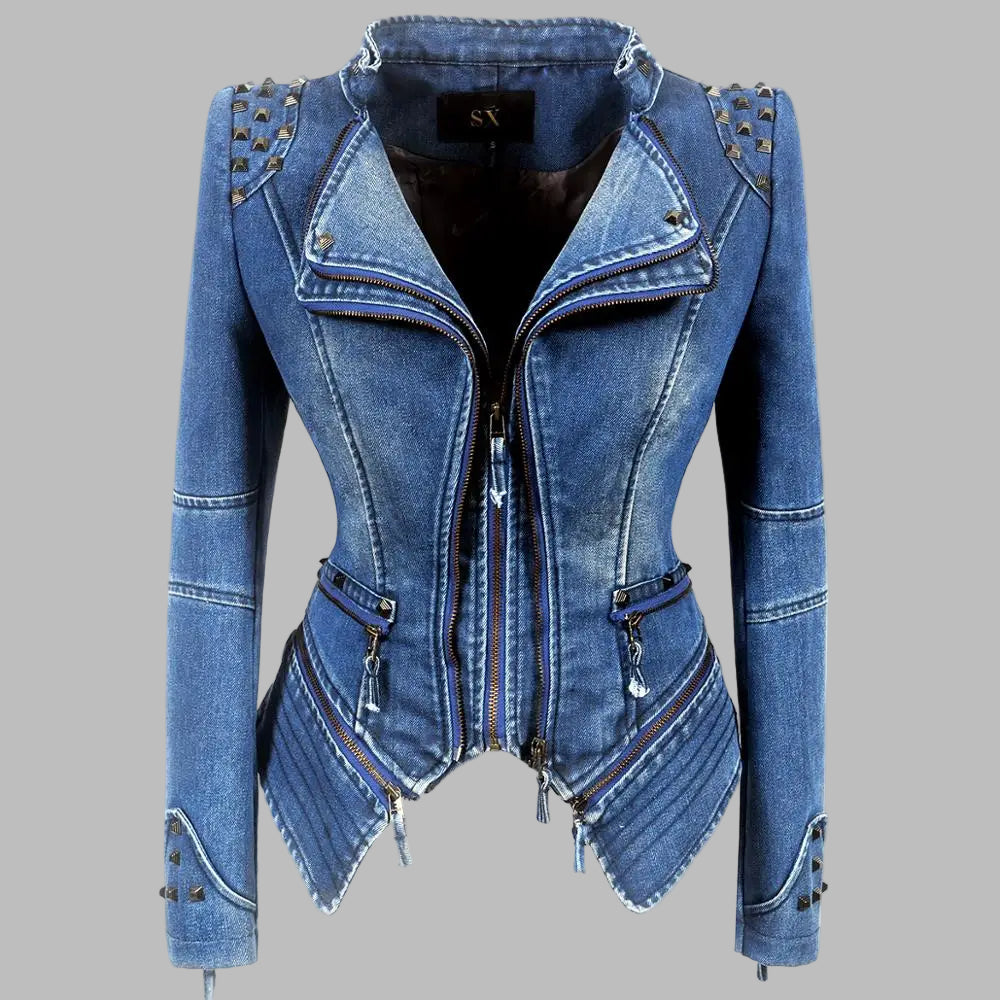 Giacca di Jeans Punk Rock con Borchie Blu