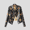 Giacca in Pelle Nera con Occhielli Metallici Steampunk
