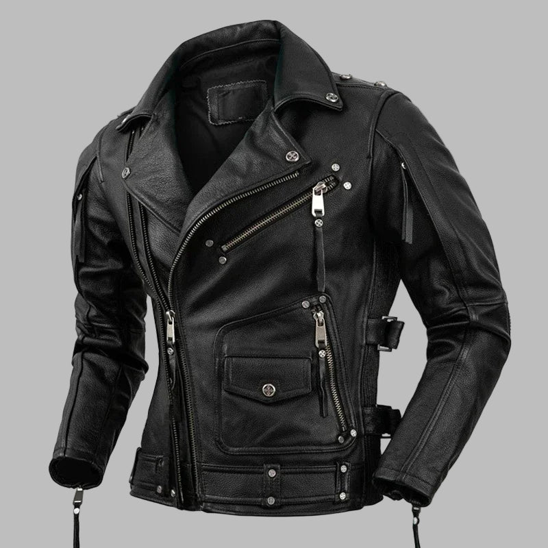 Giacca in Pelle Nera Punk Rock Stile Metal 8XL