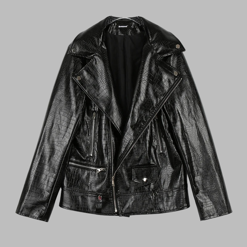 Giacca in Pelle Nera Stile Goth Metal Punk Ramoneska