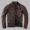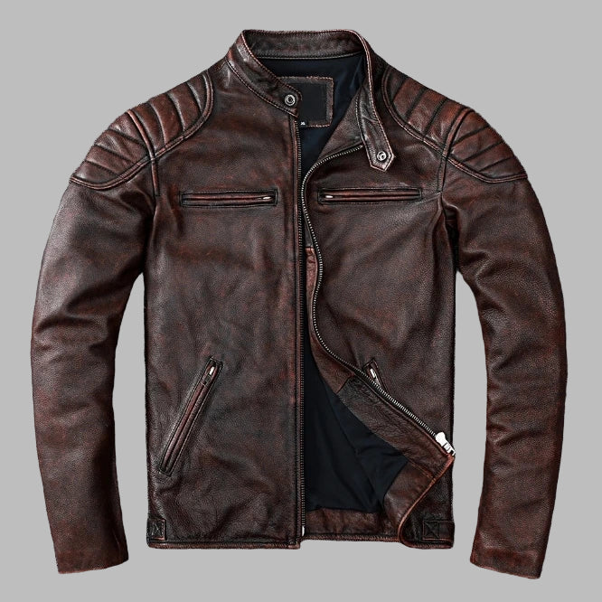 Giacca in Pelle Rock Vintage Marrone con Cuciture Vedi opzioni