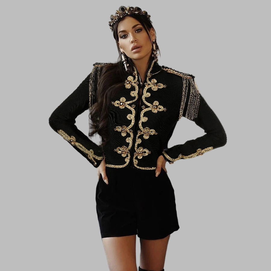 Giacca Militare Nera Ricami Dorati Donna Vintage Steampunk