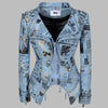 Giacca in Stile Punk Rock Metal con Stampa di Giornali Blu
