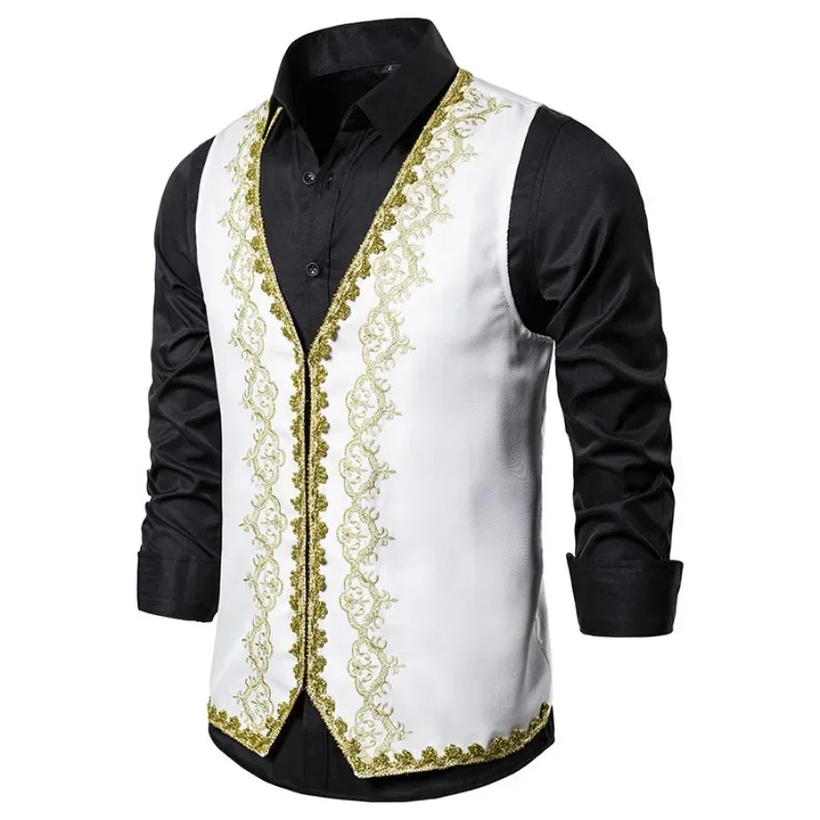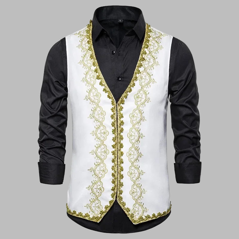 Gilet Elegante Steampunk con Ricamo Dorato Bianco