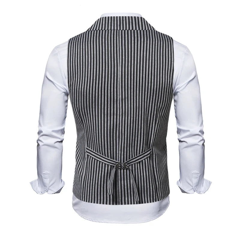 Gilet Steampunk a Righe Verticali Bianco e Nero con Chiusura Doppiopetto