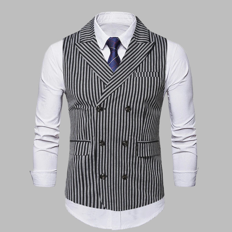Gilet Steampunk a Righe Verticali Bianco e Nero con Chiusura Doppio Petto