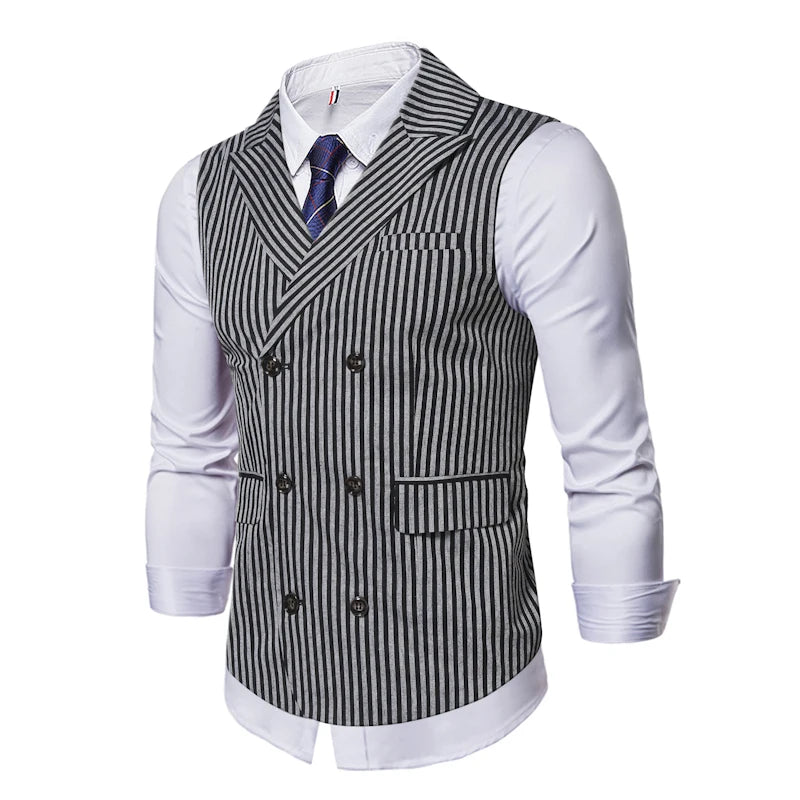 Gilet Steampunk a Righe Verticali Bianco e Nero con Chiusura Doppiopetto Vedi opzioni