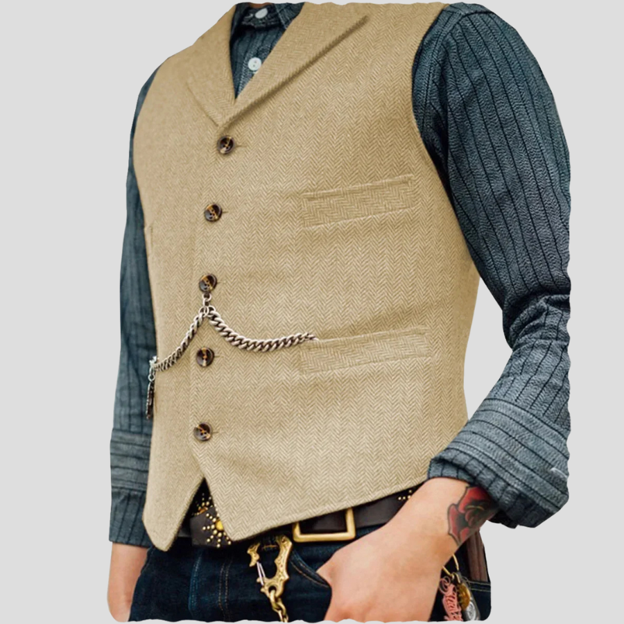 Gilet Steampunk Beige con Catena da Taschino Spina di Pesce