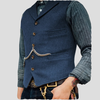 Gilet Steampunk Blu Scuro con Catena da Tasca a Spina di Pesce