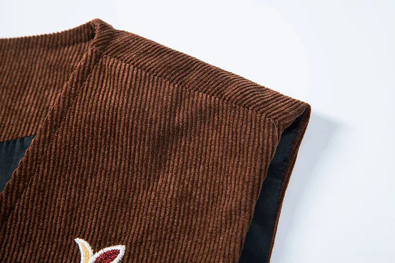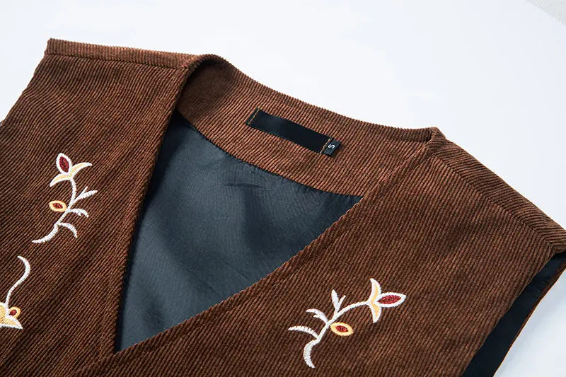 Gilet Steampunk da Uomo Marrone con Ricamo Floreale