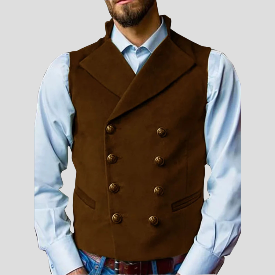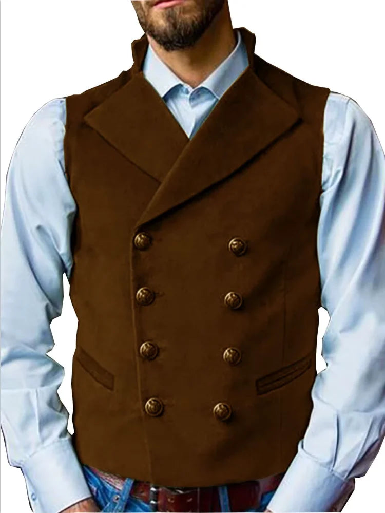 Gilet Steampunk Doppiopetto con Bottoni Marrone Classico