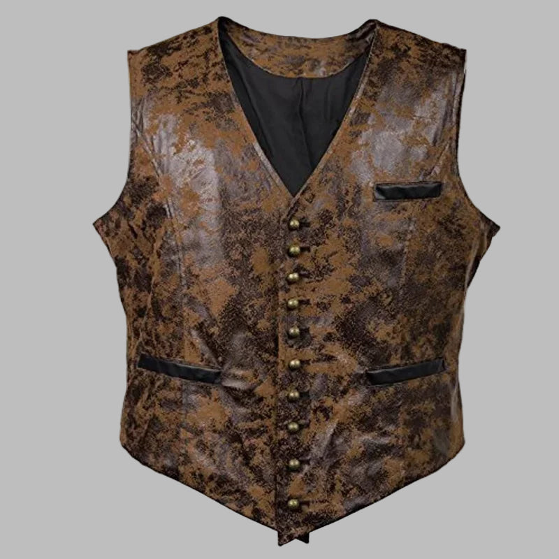 Gilet Steampunk Marrone con Effetto Vintage e Bottoni