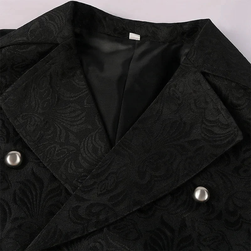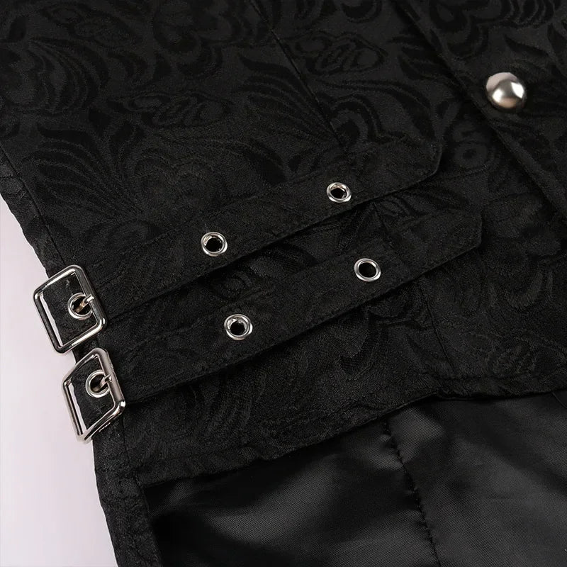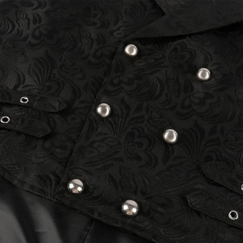 Gilet Steampunk Nero con Motivo Broccato e Pieghe