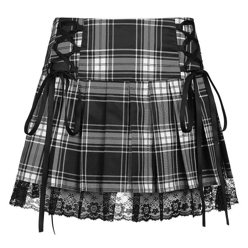 Gonna a Quadri Bianco e Nero Grunge Nera
