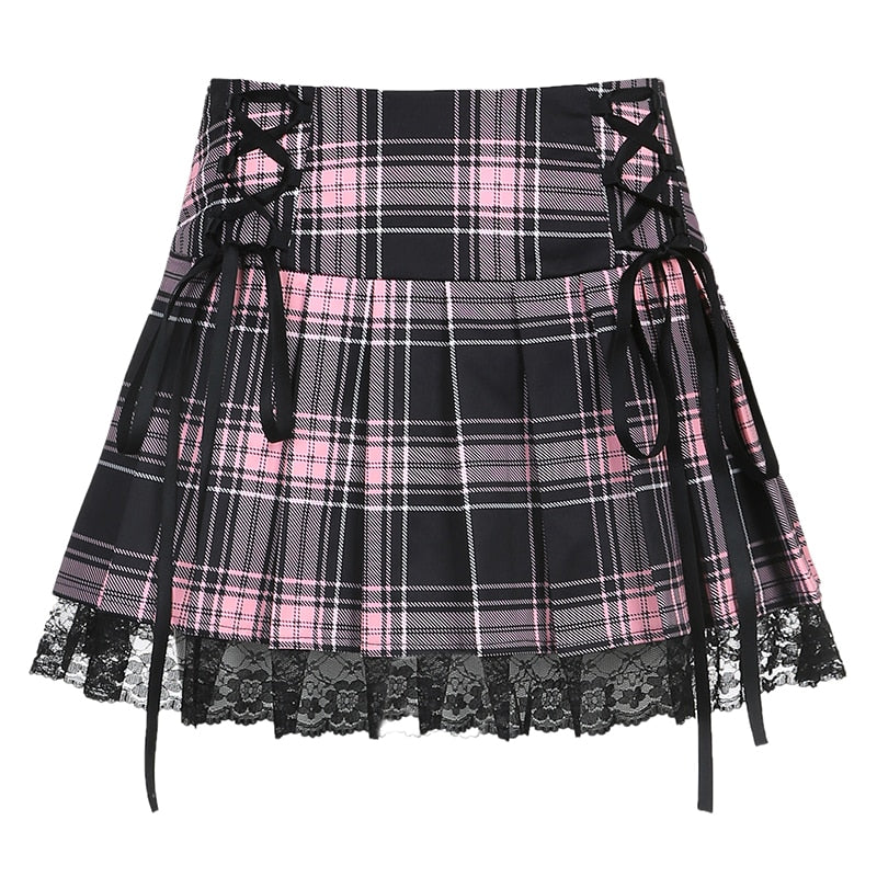 Gonna a Quadri Bianco e Nero Grunge Viola