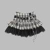 Gonna a Quadri Steampunk Grunge con Balza in Pizzo
