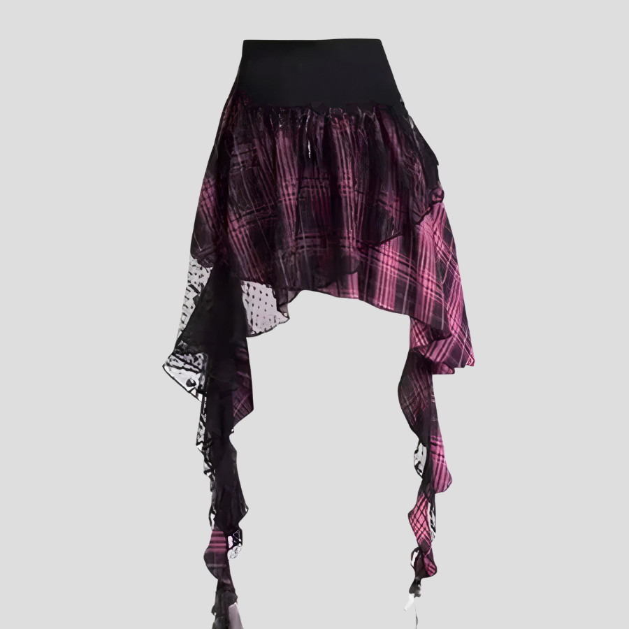 Gonna Asimmetrica Grunge a Quadri Viola Vedi opzioni