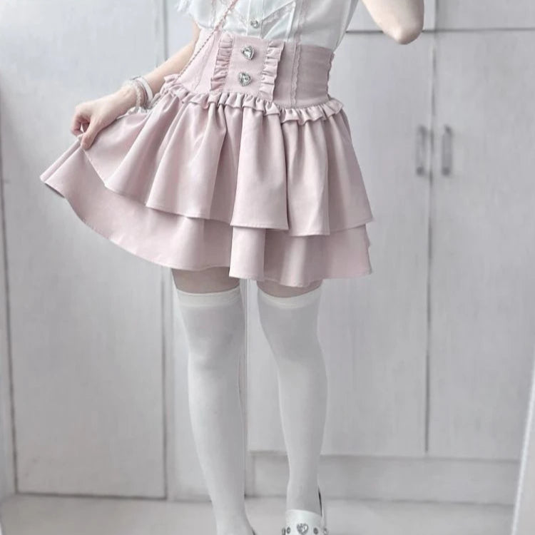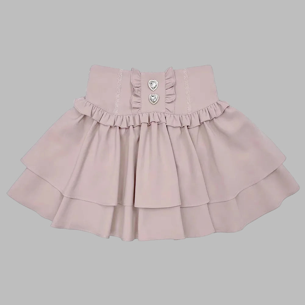 Gonna Beige Jirai Kei con Balze e Cuori Vedi opzioni