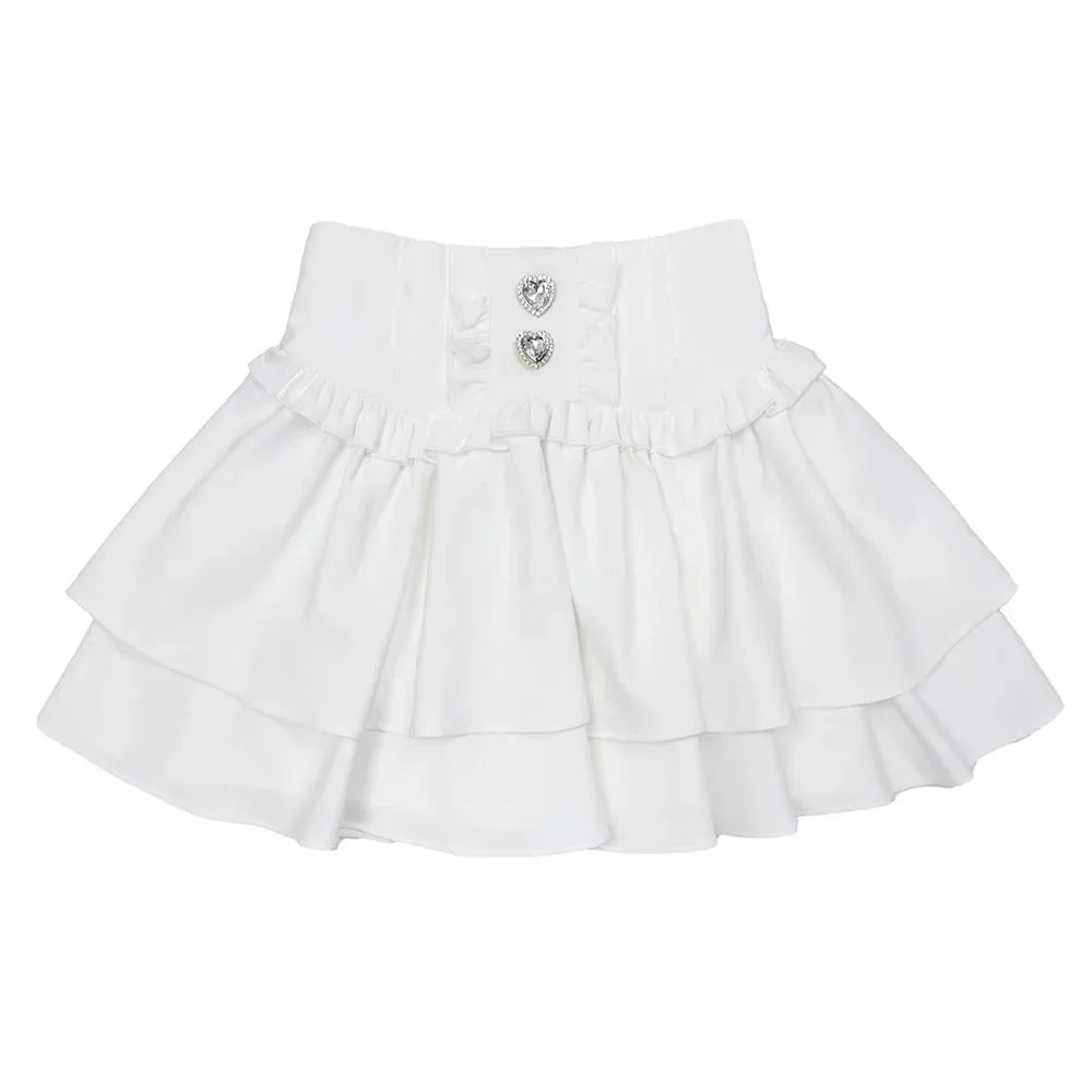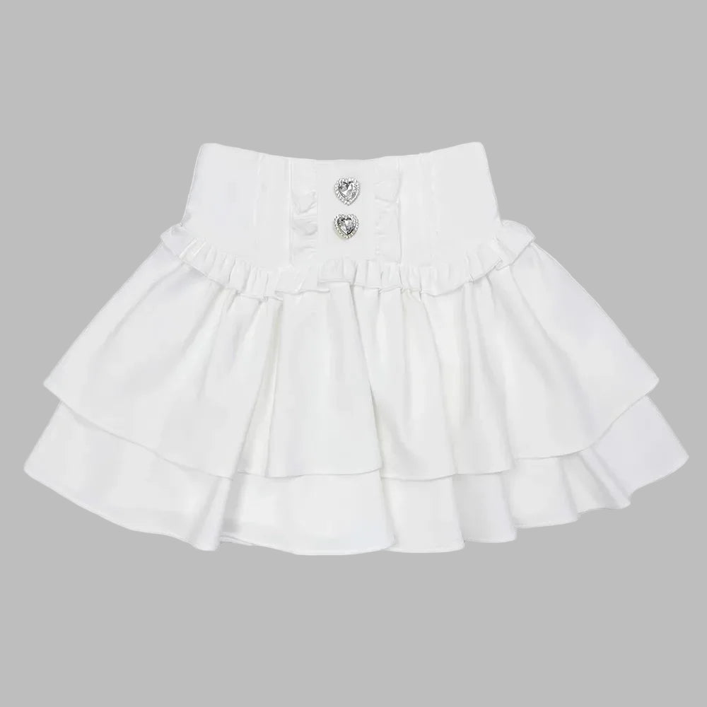 Gonna Bianca Jirai Kei con Volant e Bottoni a Cuore