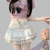 Gonna Bianca in Stile Jirai Kei con Balza di Pizzo in Denim