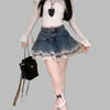 Gonna di Jeans Jirai Kei con Pizzo Bianco e Balze