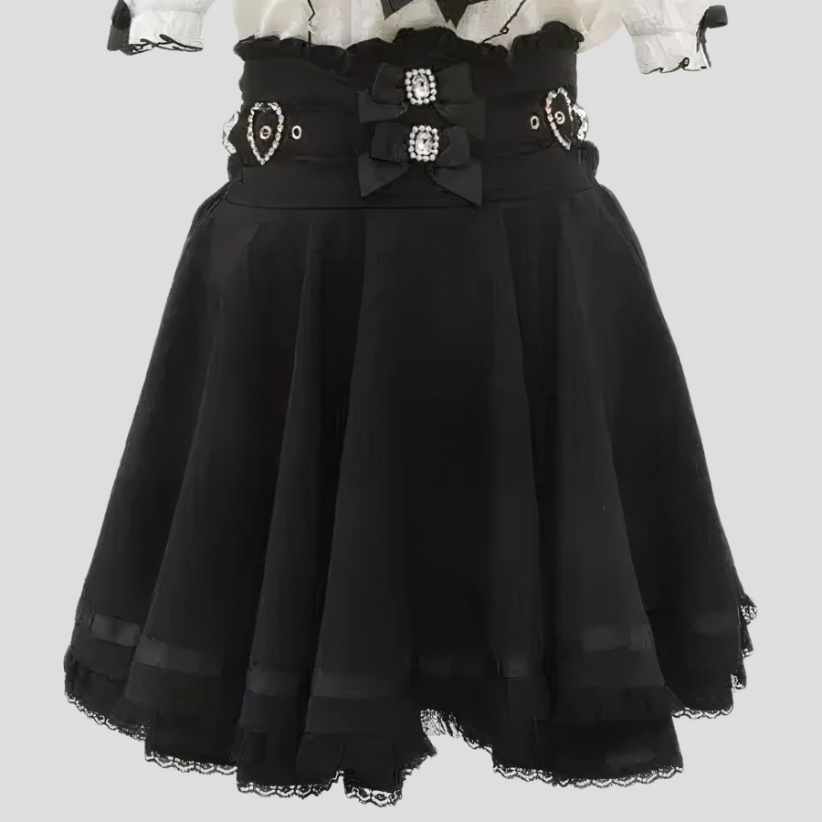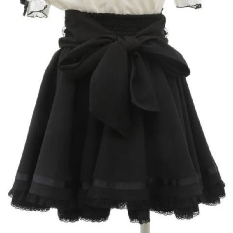 Gonna Gotica Jirai Kei Steampunk con Cintura a Corsetto e Fiocco