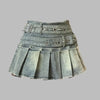 Gonna Grigia in Jeans Pieghettata con Cinture Metalliche Punk Rock