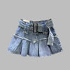 Gonna Jeans Blu Punk con Cintura e Pieghe