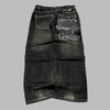 Gonna Lunga in Jeans Nera con Scritta Metallica