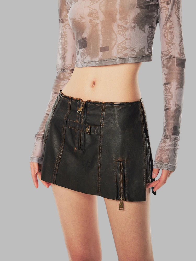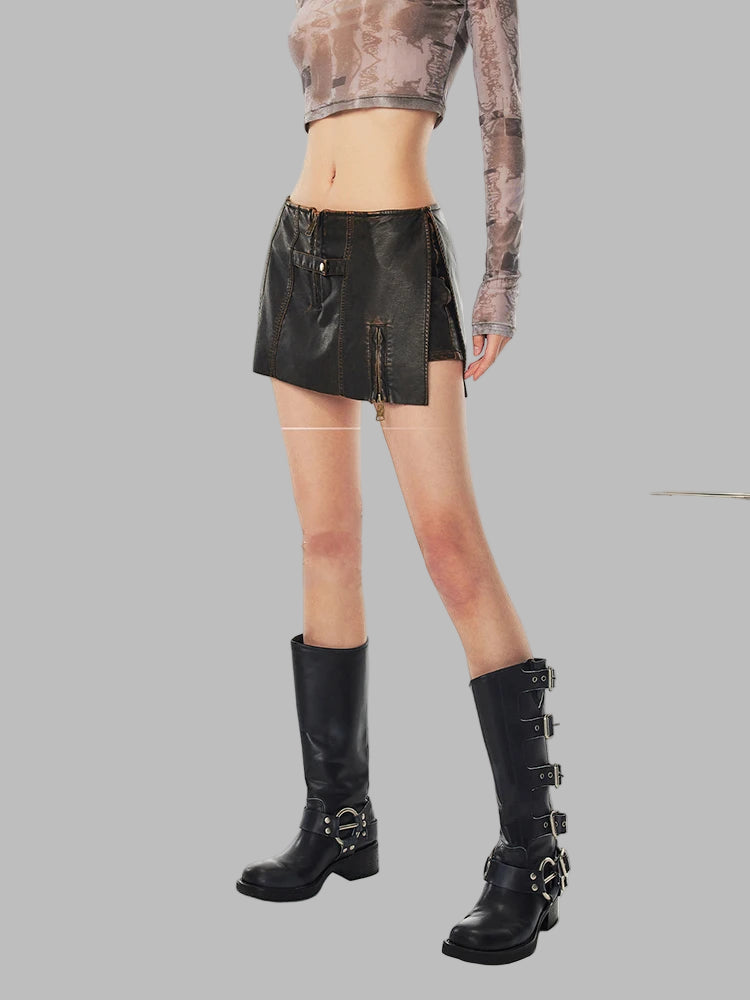 Gonna Mini Punk Nera in Pelle con Cerniere XXL