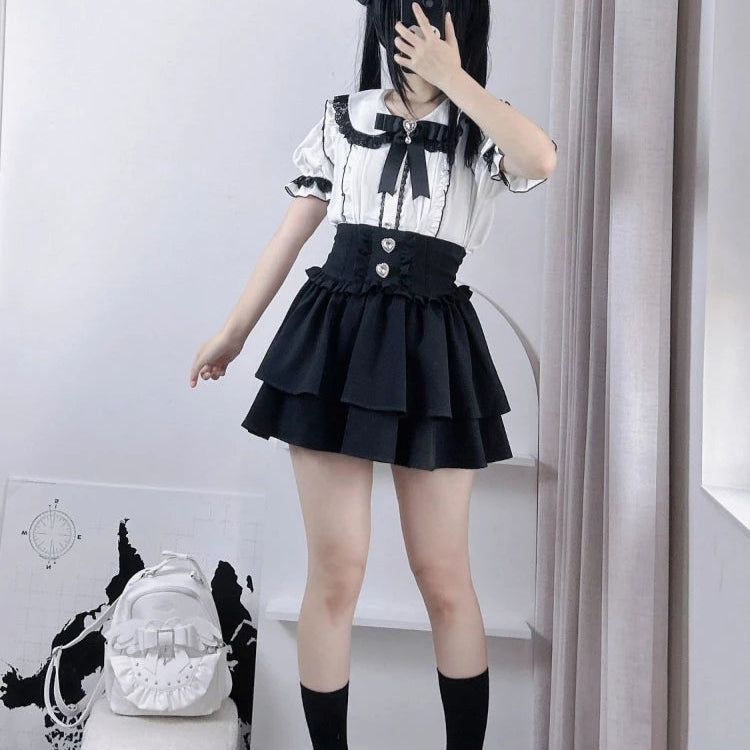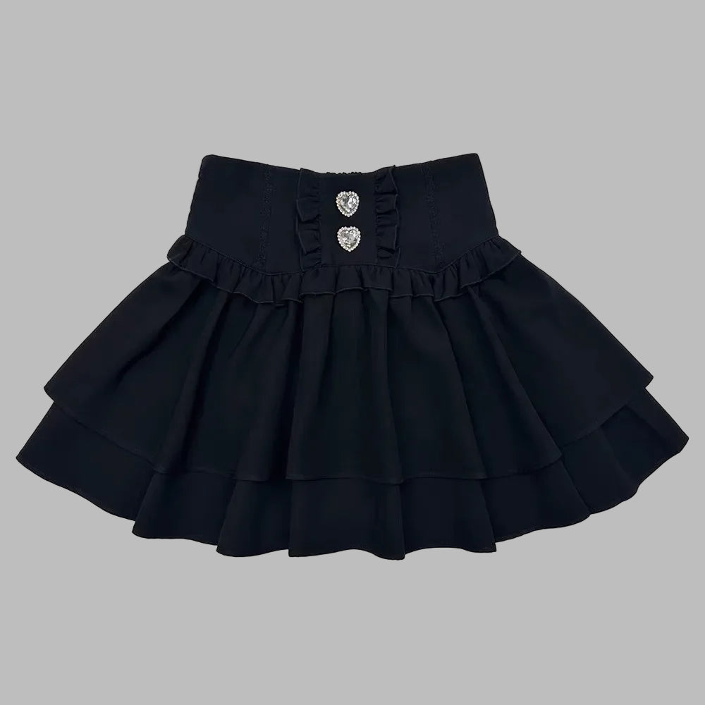 Gonna Nera Jirai Kei con Balze e Bottoni Decorativi