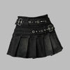 Gonna Nera Plissettata Punk con Cinghie Metalliche e Borchie