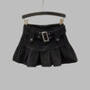Gonna Punk Nera con Cintura e Pieghe in Metallo