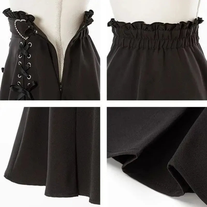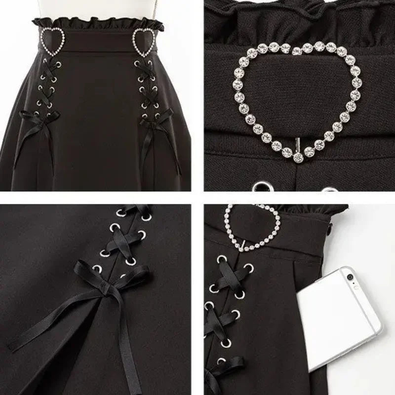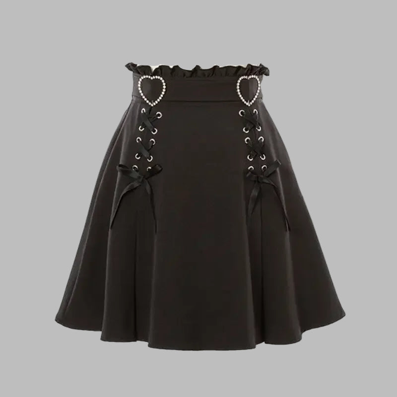 Gonna Punk Nera con Doppio Lacci e Cuori