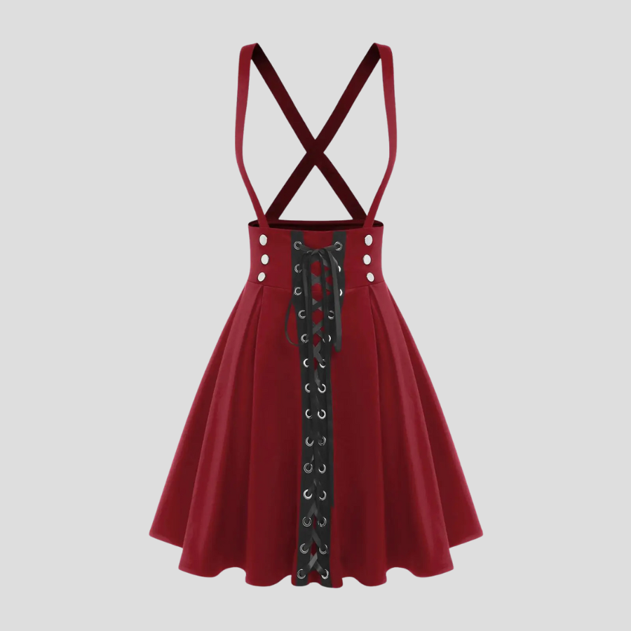 Gonna Rossa Jirai Kei con Bretelle e Allacciatura a Corsetto