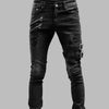 Jeans Gotici Rock Destroyed con Cerniere e Fibbie Neri da Uomo