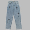 Jeans Punk Metal con Croci Azzurro Chiaro