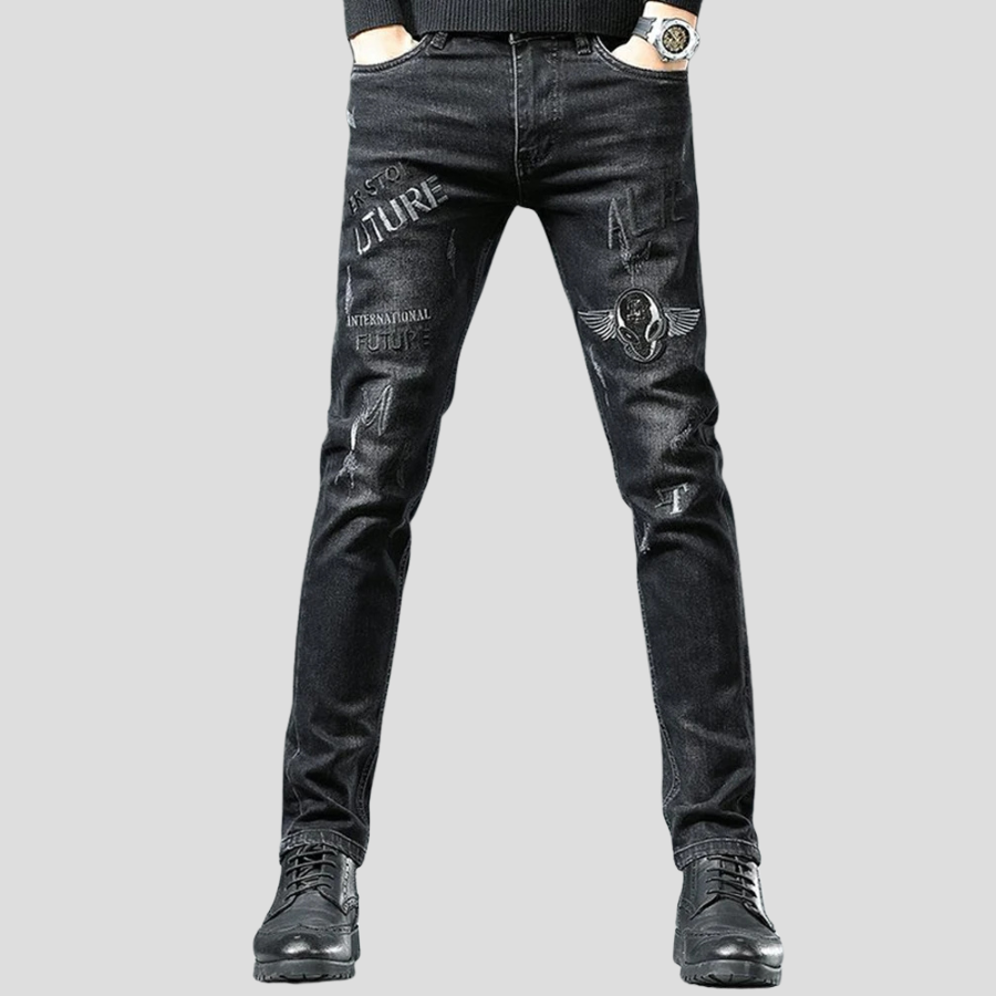 Jeans Punk Neri con Scritte e Ali