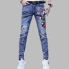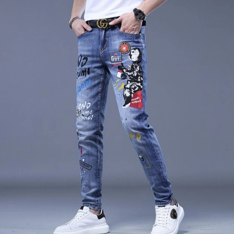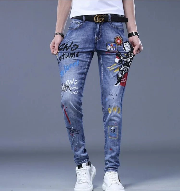 Jeans Punk Rock con Toppe e Scritte Blu 36