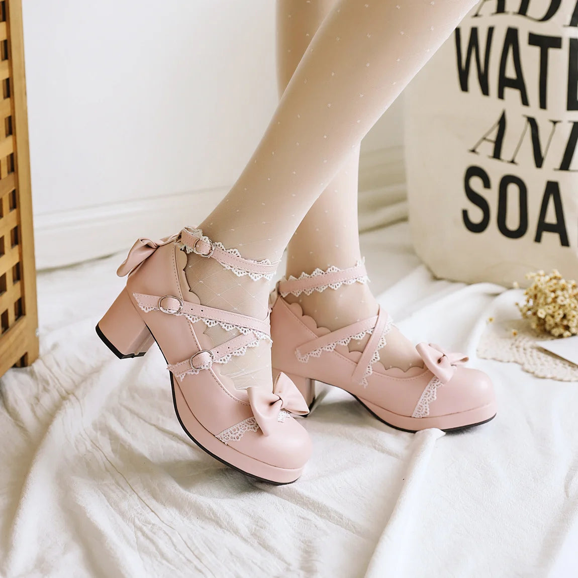 Mary Jane Rosa Jirai Kei con Pizzo e Tripli Cinturini