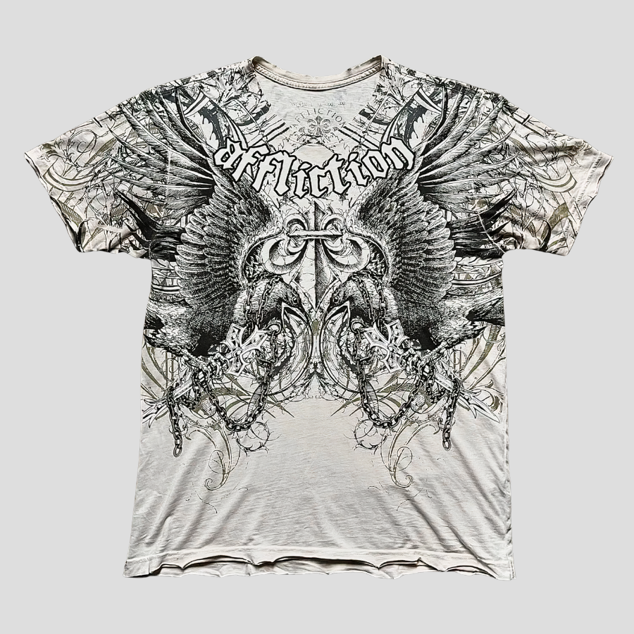Maglietta Bianca con Ali Gotiche e Croce 4XL