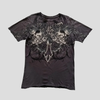 Maglietta Grigia in Metallo con Teschi e Croce Ornamentale