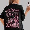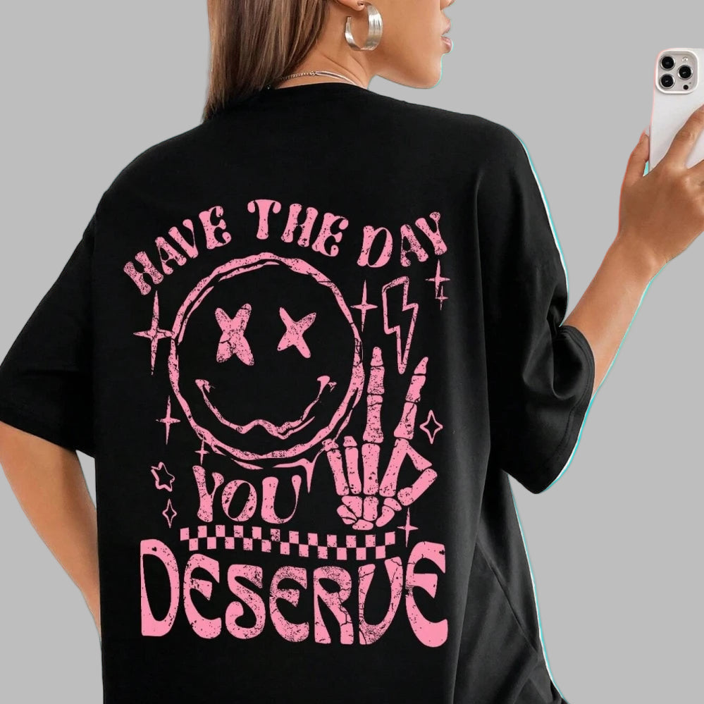 Maglietta Oversize Donna Grunge Rock con Stampa Smiley Rosa